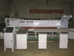工作流程:工人把要加工原板料放入電子開料鋸的工作臺(tái)面或由自動(dòng)上料設(shè)備上料----按鍵指示夾鉗夾緊板料---啟動(dòng)自動(dòng)運(yùn)行----進(jìn)入自動(dòng)工作---自動(dòng)定位---自動(dòng)齊邊---自動(dòng)鋸裁----自動(dòng)出料---按所輸入的數(shù)據(jù)自動(dòng)全部完成裁切