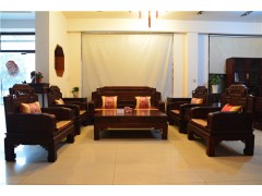 此沙發(fā)有7件套和12件套的兩款,在材質(zhì)上有緬甸花梨、紅酸枝、大紅酸枝、大葉紫檀等。