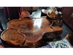 茶海,是利用樹根,經(jīng)過工藝加工,適應(yīng)于烹茶、品茶的工藝類家具。確切說,茶海是一種適應(yīng)茶的沖飲流程,與古老的根藝家具相結(jié)合,既能方便烹茶、品茶,又具有根藝或根雕類審美意識(shí)的獨(dú)特茶具。與茶海相比,薄、小者為茶盤