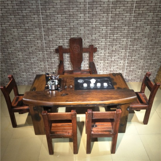 老船木仿古戶外陽臺泡功夫喝茶桌茶臺中式書房多功能茶桌椅組合