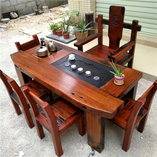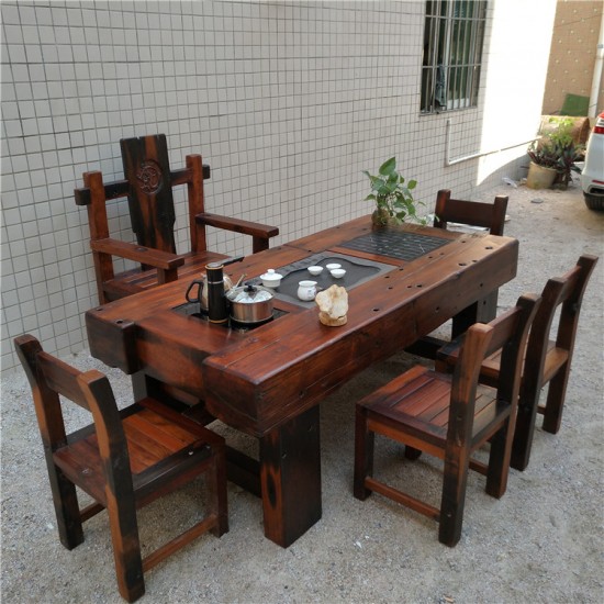 老船木仿古戶外陽(yáng)臺(tái)泡功夫喝茶桌茶臺(tái)中式書房多功能茶桌椅組合