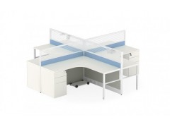 ● 屏風(fēng):厚度可以32mm,42mm或56mm,,鋁合金框架,型材厚度1.5mm,表面陽極氧化處理,四向連接,方形邊蓋,屏風(fēng)可進(jìn)行水平調(diào)節(jié),屏風(fēng)踢腳及桌上走線槽具備走線分線管理功能,并預(yù)留插座開孔。材料可選:絨布、防火板、鋼板加絨布或者玻璃。