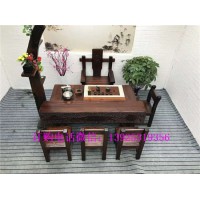老船木茶桌茶臺(tái)茶幾客廳戶外陽(yáng)臺(tái)茶桌椅組合老船木博古架