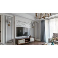 電視背景墻不光采用了對(duì)稱的石膏裝飾造型,電視背面的水墨畫好像進(jìn)口的石材裝飾一樣有質(zhì)感。