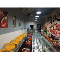 ●回轉(zhuǎn)火鍋輸送設(shè)備可以根據(jù)店面的布局和客戶的要求設(shè)計(jì)任何形狀,人和風(fēng)格;