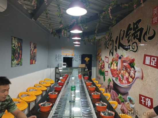 旋轉(zhuǎn)小火鍋,全部由機器操作,避免消費者在用餐高峰時段的等菜現(xiàn)象。