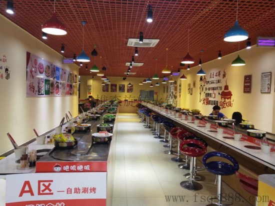 回轉(zhuǎn)火鍋輸送帶是采用不銹鋼制造,整個傳動系統(tǒng)是采用密封式設(shè)計,輸送鏈帶結(jié)構(gòu)嚴(yán)謹(jǐn),運行安全無噪音,讓顧客加餐更方便,環(huán)境安靜無噪音。旋轉(zhuǎn)火鍋設(shè)備店倡導(dǎo)“美味健康、花錢少”的經(jīng)營理念,