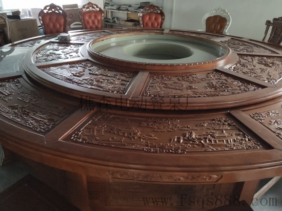 電動餐桌多主要用于高檔酒店包間,星級餐廳,大型會所、私人別墅,政府食堂接待等地方。豪華雕花電動餐桌:整張桌子為馬來西亞進口橡木做成,純手工東陽雕花,貼金箔,桌子轉(zhuǎn)盤自動轉(zhuǎn),帶電磁爐(一般為2000W),帶聲控音樂噴泉,遙控控制,桌子內(nèi)部為鋼架結(jié)構(gòu)。德國易涂寶面漆,PE底漆。