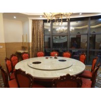 大理石餐桌:桌子腳架是進口橡木做的,桌面是天然玉石,轉(zhuǎn)盤自動轉(zhuǎn),帶2000W電磁爐。