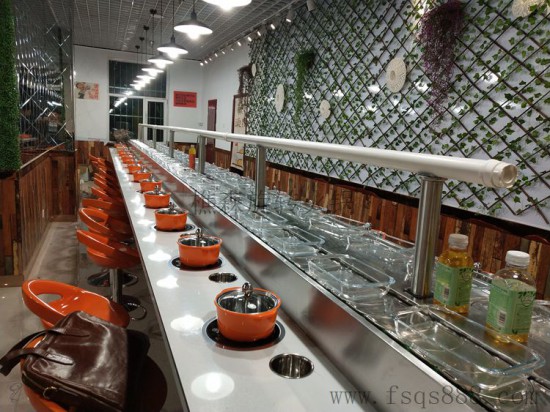 ●回轉(zhuǎn)火鍋輸送設(shè)備可以根據(jù)店面的布局和客戶的要求設(shè)計任何形狀,人和風(fēng)格;