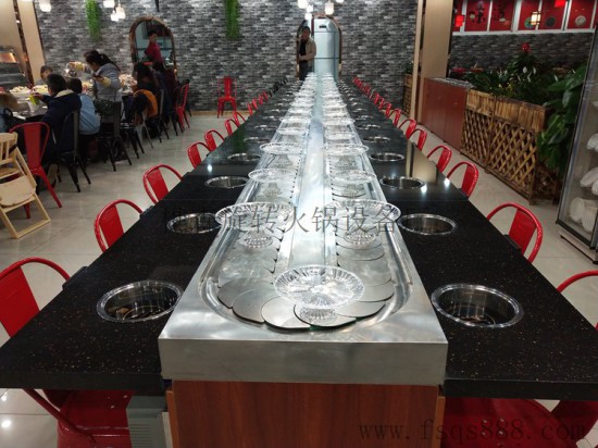 ●回轉(zhuǎn)火鍋輸送設(shè)備可以根據(jù)店面的布局和客戶的要求設(shè)計(jì)任何形狀,人和風(fēng)格;