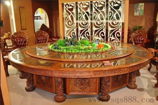 【功能介紹】:電動(dòng)功能,即桌子的轉(zhuǎn)盤是在電動(dòng)機(jī)的驅(qū)動(dòng)下進(jìn)行旋轉(zhuǎn),轉(zhuǎn)速可調(diào),方便用餐人員,夾取食物菜肴,遙控器控制或手動(dòng)開關(guān)控制旋轉(zhuǎn);另可增設(shè)旋轉(zhuǎn)式電磁爐、電動(dòng)音樂噴泉等功能。免費(fèi)配有2個(gè)遠(yuǎn)程遙控器,方便侍者服侍。中間放置山水噴泉景觀,水流在滾運(yùn)石的旋轉(zhuǎn)下飛濺,池中可放置五彩石和金魚,另外可打開音樂功能,增加別樣用餐氛圍。