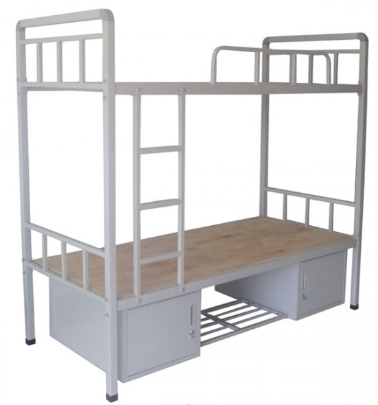 4、雙層底柜學(xué)生公寓宿舍床尺寸:2m×1m×1.7m。(常為兩人宿舍或四人宿舍,上為床鋪,下為書(shū)桌衣柜空間);