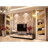 立體效果的玻璃作為電視背景墻的裝飾材料,將立體感完美的展現(xiàn),打破了原來(lái)平淡而普通的圖案效果,營(yíng)造出個(gè)性獨(dú)特的3D立體效果圖案;
