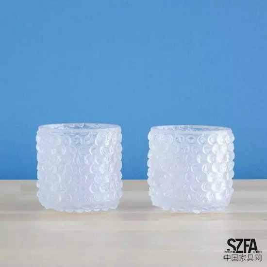 包裹里面用來緩沖、防震的氣泡膜,總是讓人忍不住想要把它一個一個捏破。藝術家Chris Taylor所設計的百分百手吹玻璃作品--氣泡玻璃對杯Bubble Wrap Glass,以熟練的玻璃制作技巧,刻意將玻璃塑造成帶有獨特凹口的大浪狀表面,完全模擬了氣泡膜的外觀,幾可亂真的效果,恐怕會讓忍不住手癢的人吃上苦頭。