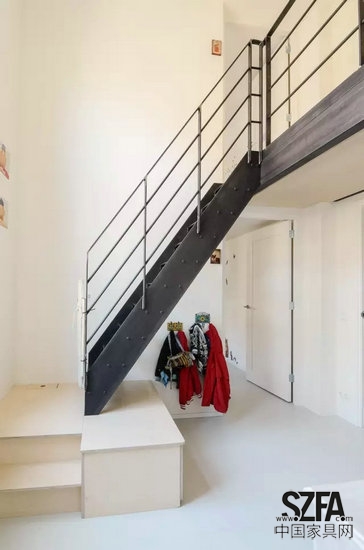 混凝土樓板和鋼樓梯保留了學校原有的特色,結(jié)合了膠合板的材質(zhì),使導整個室內(nèi)更加光明和溫暖。