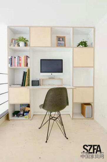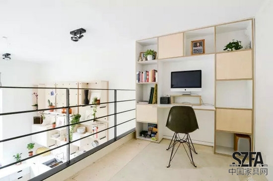 沿樓梯而上便是工作區(qū)域,用隔板隔出的工作區(qū)有效的利用了空間,一旁的鋼琴更顯屋主的志趣。