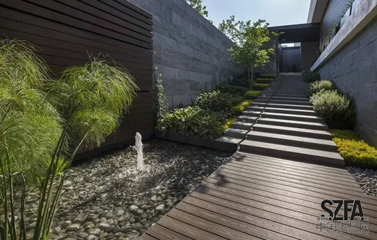 這棟別墅設(shè)計(jì)時(shí)使用到的建筑元素包括白色扁平的墻壁、木材、mirasema石材、玻璃幕墻和鋼材。為了營(yíng)造出一種天然不造作的優(yōu)雅環(huán)境,設(shè)計(jì)師可謂煞費(fèi)苦心。