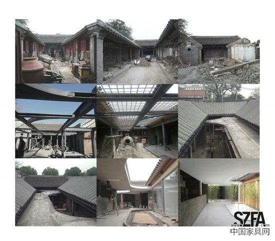 修復(fù)舊的。整理和分析現(xiàn)存舊建筑是設(shè)計的開始。北側(cè)正房相對完整,從木結(jié)構(gòu)和灰磚尺寸上判斷,應(yīng)該至少是清代遺存;東西廂房木結(jié)構(gòu)已基本腐壞,用磚墻承重,應(yīng)該是七八十年代后期改建的;南房木結(jié)構(gòu)是老的,屋頂結(jié)構(gòu)是用舊建筑拆下來的木頭后期修繕的,墻面與瓦頂都由前任業(yè)主改造過。根據(jù)房屋的年代和使用價值,設(shè)計采取選擇性的修復(fù)方式:北房以保持歷史原貌為主,僅對破損嚴(yán)重的地方做局部修補(bǔ),替換殘缺的磚塊;南方局部翻新,拆除外墻和屋頂裝飾,恢復(fù)到民居的基本樣式;東西廂房翻建,拆除后按照傳統(tǒng)建造工藝恢復(fù)成木結(jié)構(gòu)坡屋頂建筑;拆除所有臨建房,還原院與房的肌理關(guān)系。