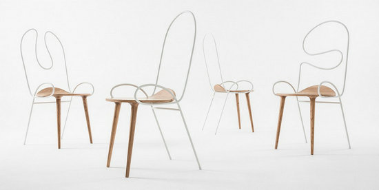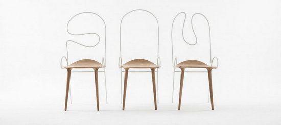 家具與他者的關(guān)系,是物體與身體、物體與周遭環(huán)境的關(guān)系;家具本身,則是由上述關(guān)系投射到物與物、材料與材料的獨(dú)特的連接關(guān)系。Sylph椅有意設(shè)定了兩個材料,一個工業(yè)化的可以任意彎曲的細(xì)鋼管和一個需要手工細(xì)作的木質(zhì)材料,這兩個材料將被連接,并以各自的方式(與身體的關(guān)系和材料自身特性)成為椅子的一部分。