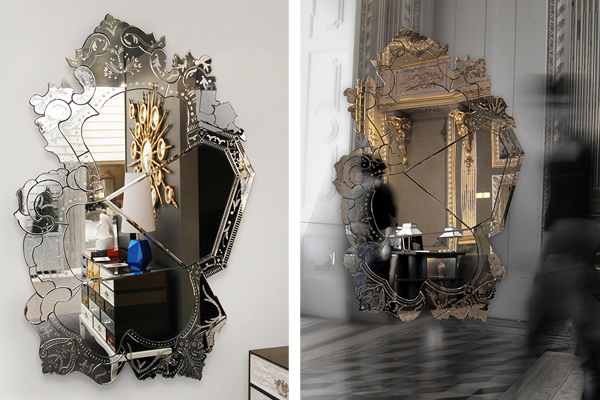 精致復(fù)雜的線條將玻璃勾畫(huà)切割成一個(gè)如藝術(shù)品般精美的整體。不依靠其他裝飾的作用,將鏡子打造成一個(gè)優(yōu)雅美麗的作品,依靠精巧純熟的技術(shù)達(dá)成。Venice傳達(dá)了Boca do Lobo想要通過(guò)現(xiàn)代設(shè)計(jì)實(shí)現(xiàn)手工藝價(jià)值的目標(biāo),這個(gè)手工玻璃制品的技術(shù)包括冷切刨邊和雕刻。