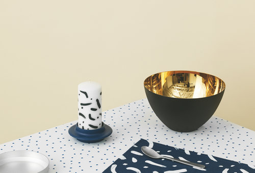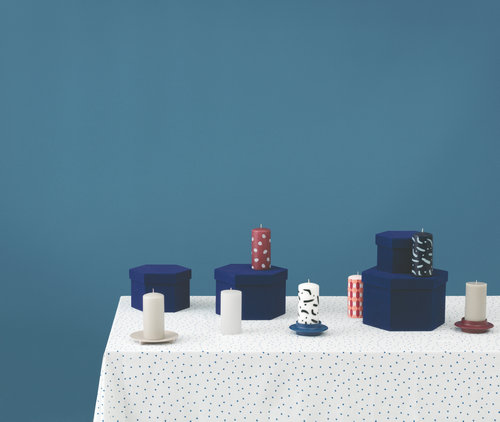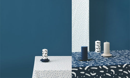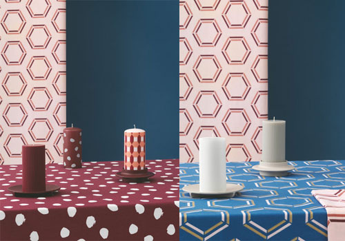 Each print is named after the word 'cheers' in different languages, together with a city from the country where that language is spoken: e.g. Salute Rome or Kampai Kyoto. The different prints can also cunningly serve as inspiration for festive themes. How about setting the table for an extravagant Italian pool party or a ceremonial Japanese breakfast? By making small changes to the combination of candles, cloths and napkins, it is possible to create multiple expressions and introduce new themes to every occasion.