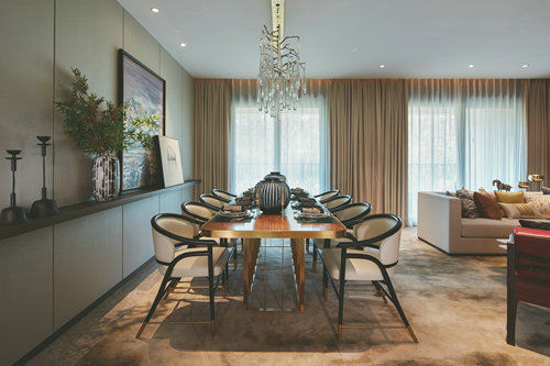 新中式,當(dāng)下時(shí)代的議題,東方的豐富細(xì)膩,以現(xiàn)代的方式詮釋,將生活形態(tài)和美學(xué)意識(shí)轉(zhuǎn)化成一種無聲卻可以感知享受的設(shè)計(jì)語言。對于意境氛圍的營造,設(shè)計(jì)師從細(xì)節(jié)入手,餐廳的掛畫、花藝綠植、擺件,組合成意境小景,賦予日常生活審美情趣。