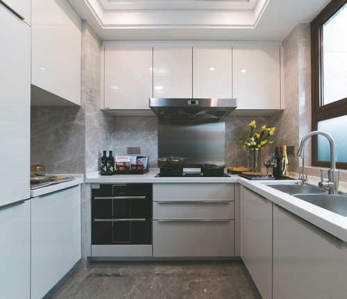 色彩的使用也迎合了含蓄美的理念,采用素色的搭配,不僅讓空間更干凈清爽,也展現(xiàn)了一種干練的高級(jí)美。例如廚房的空間光是色彩的運(yùn)用就充分傳達(dá)了分明的層次,左側(cè)大面積鋪展咖啡色墻體,莊重而不失雅致,右側(cè)則從彩云灰過(guò)度到優(yōu)雅白,簡(jiǎn)約而不簡(jiǎn)單,整體大氣而流暢。