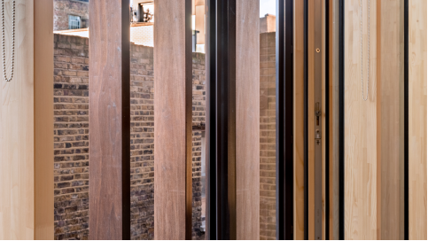 “熱處理技術(shù)無需使用任何化學(xué)物質(zhì),只是把木頭進(jìn)行烘烤。一旦木材干燥,就可以將其放入高溫中處理。” Venables解釋道。這個過程通過結(jié)晶形成層來增強(qiáng)木材的穩(wěn)定性和耐用性,并防止木材收縮和膨脹。“通常在熱處理過程中,加熱到180攝氏度以上,木材的水分含量會降低到4-6%左右,”Venables進(jìn)一步解釋說:“這樣可以防止真菌和昆蟲腐爛,因?yàn)楹婵緯芊饽静?,使其不易彎曲、開裂或移動??紤]到當(dāng)時還沒有現(xiàn)成的數(shù)據(jù),項(xiàng)目期間AHEC進(jìn)行了一些防火測試,以證明熱處理鵝掌楸木具有防火性能,可以為多層建筑提供足夠的保護(hù)。”